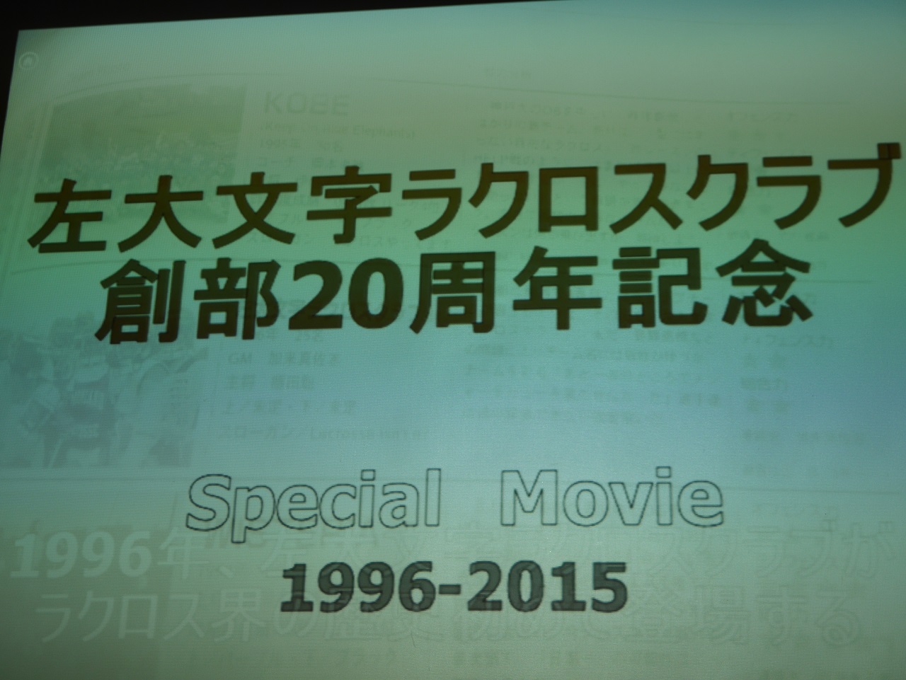 当週刊左大文字でも告知してきた20周年パーティが26日、西梅田キララにてとり行われた。チーム立ち上げ時のメンバーから今年加入の現役選手まで総勢58が集まり、これまでの歴史を振り返りつつ思い出話に華を咲かせた。